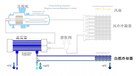 55世纪风冷自然冷却机组:该机组适合于全年有制冷需求的场所,并且其利用北方地区秋冬季较低的室外温度,由冷空气直接为冷冻水进行降温,避免了压缩机制冷产生的高能耗,对提高全年系统能效,降低全年运行费用有极大的帮助。