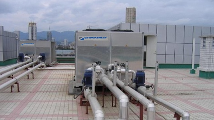 上海市复旦大学附属眼耳鼻喉科医院洁净空调部分采用三台四管制多功能冷热水机组,机组单台制冷量140RT;在2008年,55世纪三台高温型风冷热泵已在上海市肿瘤医院投入运行,且至今运行状况良好。因此,上海市肿瘤医院在此次改造项目中又新增两台风冷热泵,机组单台制冷量100RT。为了控制医院以及周围居民环境噪音,两家医院此次均采用超低噪音型机组,比传统风冷热泵低10分贝。