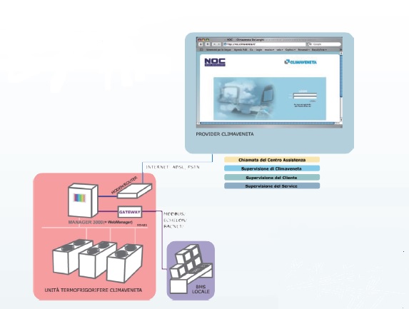 通过MANAGER 3000,可与BAS/BMS管理系统进行通讯可支持: MODBUS通讯协议的串口模块,LONWORKS通讯协议的模块,BACNET通讯协议的模块